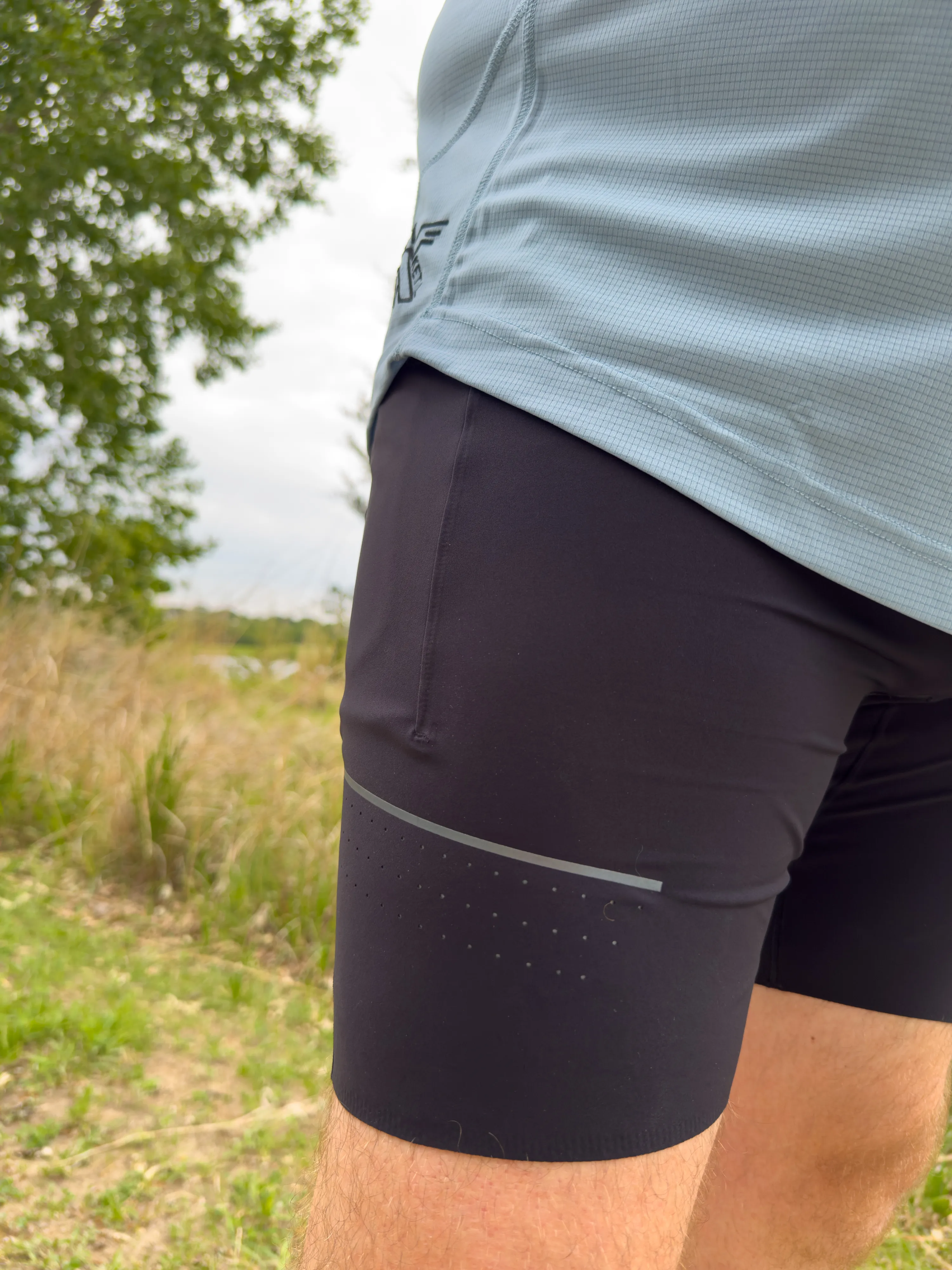 The pockets on the Fast and Free Half Tights are up there for me. There is one sizable pocket on each leg, with a smaller pocket within each larger pocket. I assume the inner pockets are for small items (like keys or gels), with the outer pockets for things like phones. The larger pockets are likely able to carry most phones, but most phones will stick out a bit, with larger ones sticking out more. My iPhone 16 Pro takes up basically the entire large pocket, but the pocket doesn’t “close” over the top of it. Even so, I feel confident carrying things in them and nothing bounces or moves around excessively. Slightly taller and I’d give them an even higher score.