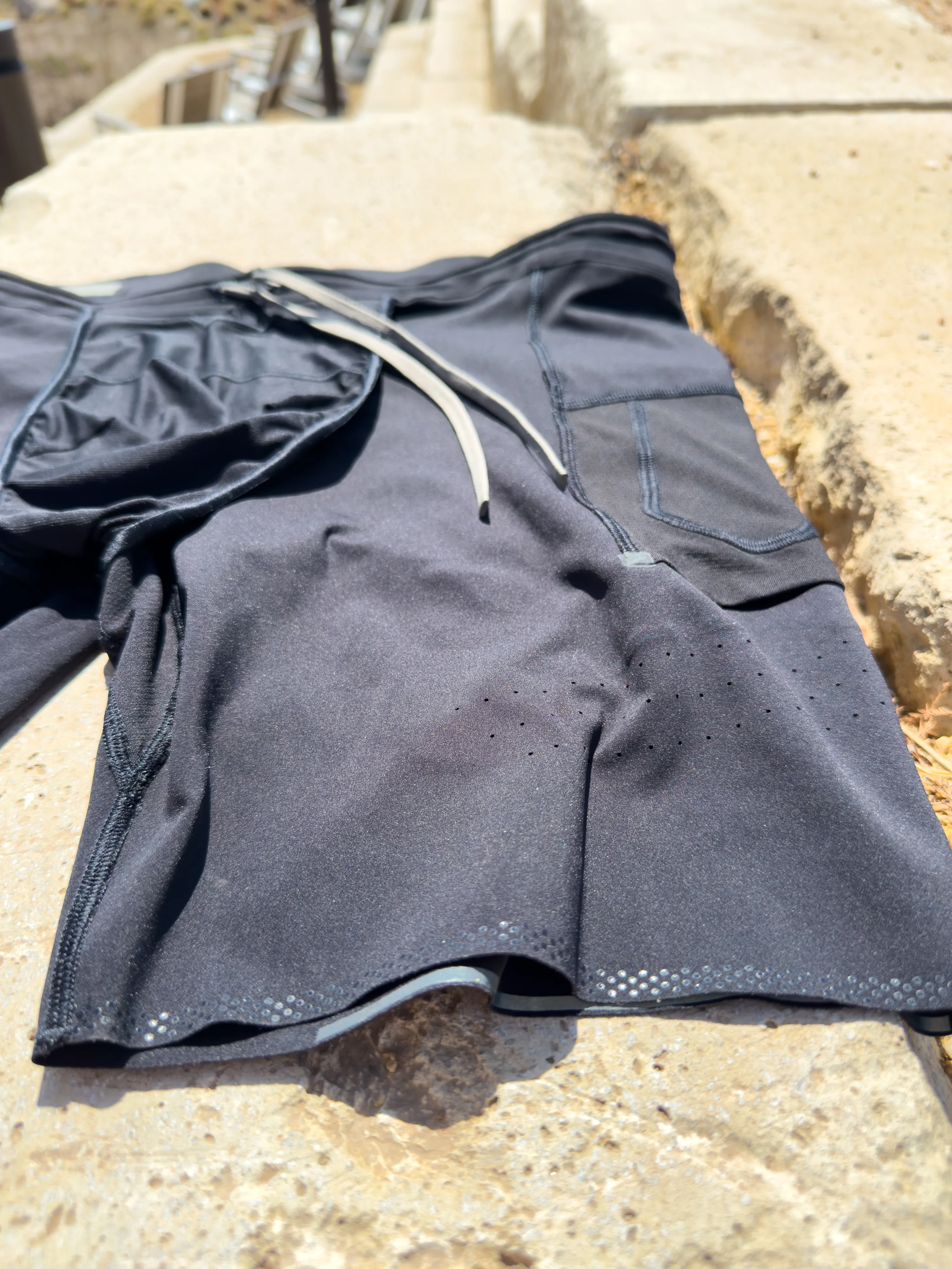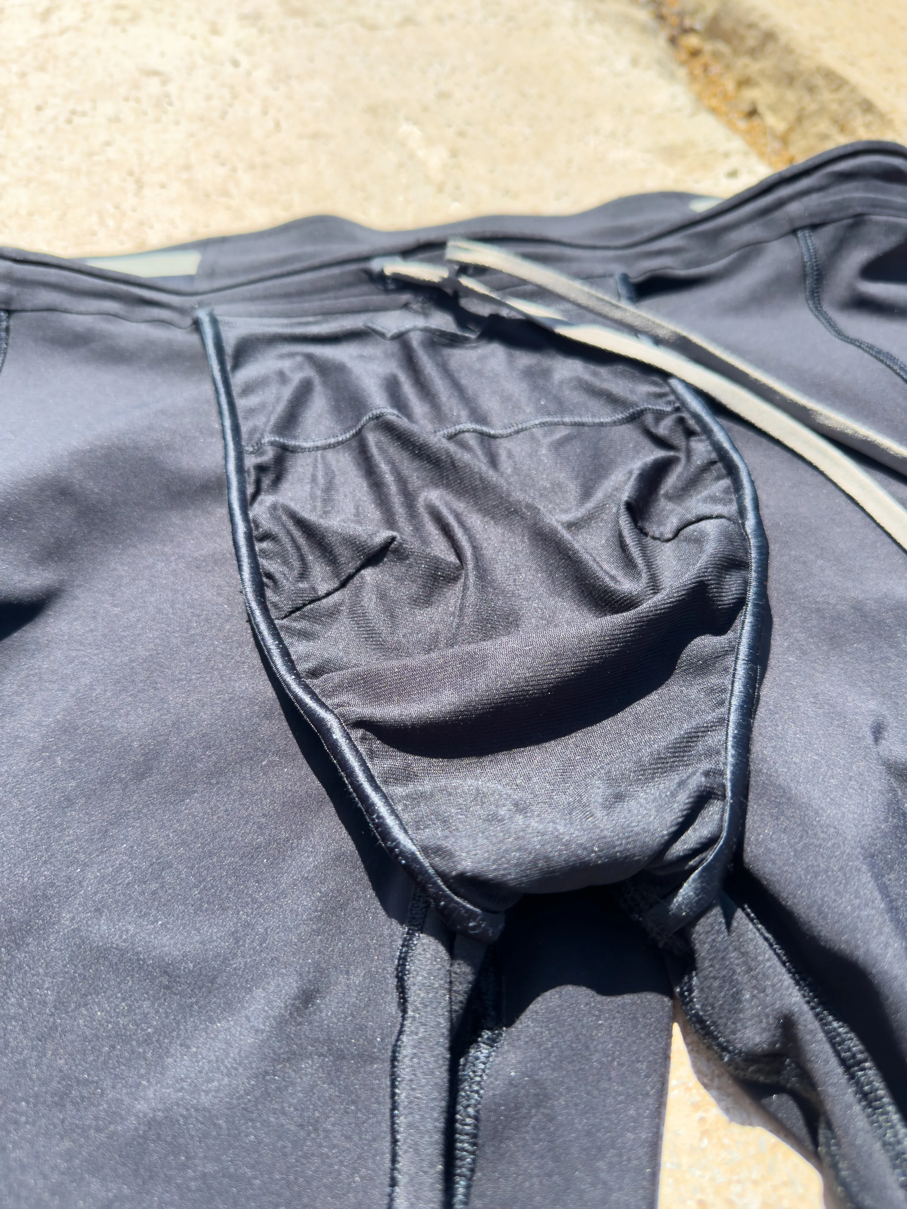 A particular construction detail I like is the “liner,” which it really isn’t — it amounts to an extra layer of “floating” fabric in the front (basically an inverted triangle of fabric stitched between the legs and at the top front, everything else hanging free). I generally do not feel like a full brief liner benefits me, as I don’t think the extra layer in the back is doing anything other than adding bulk (I’ve never personally suffered butt-cheek chafing). For me, that makes the Fast and Free approach ideal — a bit of privacy and chafing protection with minimal additional bulk. There is a strange hole/pocket at the top of the liner, which you can see in the photos below, but I have no idea what it’s for — if you know, reach out!
